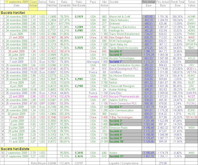 Hélas, il se fait que ces placements de trésorerie consistaient, presqu’exclusivement en actions privilégiées Ambac. Des réductions de valeur pour 90 % de ce poste ont été actées lors des comptes annuels arrêtés le 31 mars 2009 (mais disponible depuis seulement le 15 septembre) et, selon des informations que nous a transmises un de nos fidèles abonnés, il semblerait que la valeur de ces actions ait été ramené à 0 au 30 juin de cette année. Bref, à l’heure actuelle, Alliance Semi Conducteur ne vaut plus … que l’espoir d’une revalorisation des actions privilégiées Ambac qu’elle détient. La société ne répond donc absolument plus aux critères suffisants pour rester dans notre portefeuille et nous l’avons donc vendue sans aucun état d’âme.