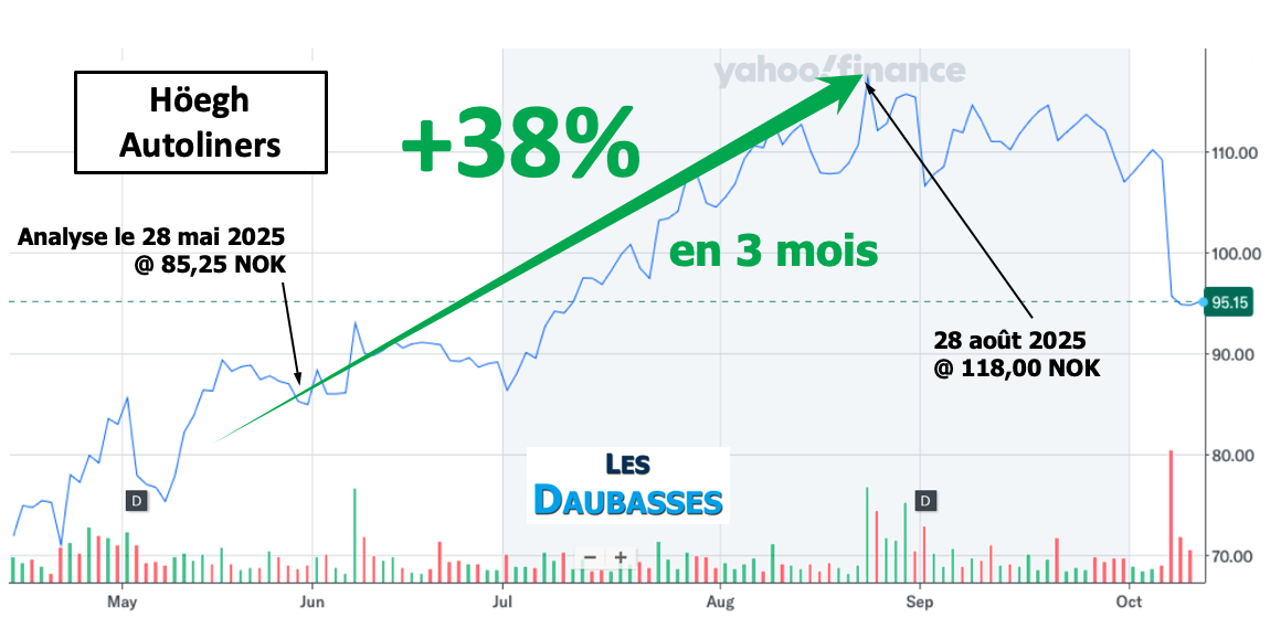 Hoëgh Autoliner est une idée d’investissement proposée à nos abonnés le 28 mai 2025. Le titre cotait alors 85,25 NOK.