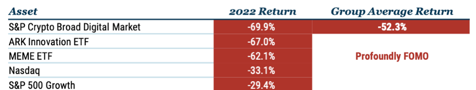 Un message de prudence qu’il a renouvelé début 2022 dans « Let The Wild Rumpus begin ». Cette fois-ci, les faits lui ont donné raison. L’année 2022 a en effet été marquée par l’effondrement de la plupart des classes d’actifs en surchauffe : valeurs de croissance, Nasdaq, « meme stocks » ou encore crypto monnaies.